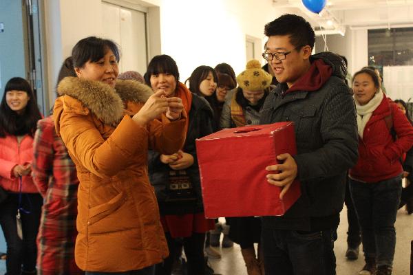 活动最后的抽奖成为本次活动的高潮。由环艺系党总支副书记贾向红老师在幸运箱里抽奖,分别抽取了一等奖一名、二等奖两名、三等奖三名幸运儿。同学们都以羡慕的目光和眼神表示了对获奖者的祝贺。