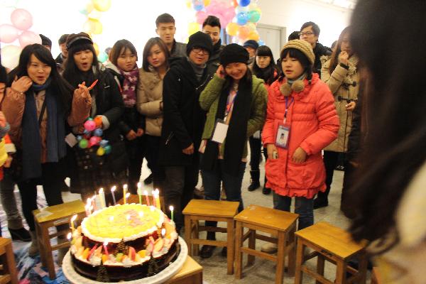 图为活动现场员工集体吹元旦蛋糕蜡烛